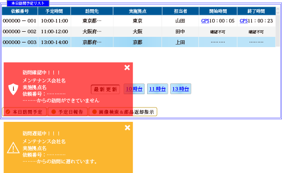 本日訪問予定の依頼で進捗状況に異常が発生している場合に通知を表示してお知らせします。